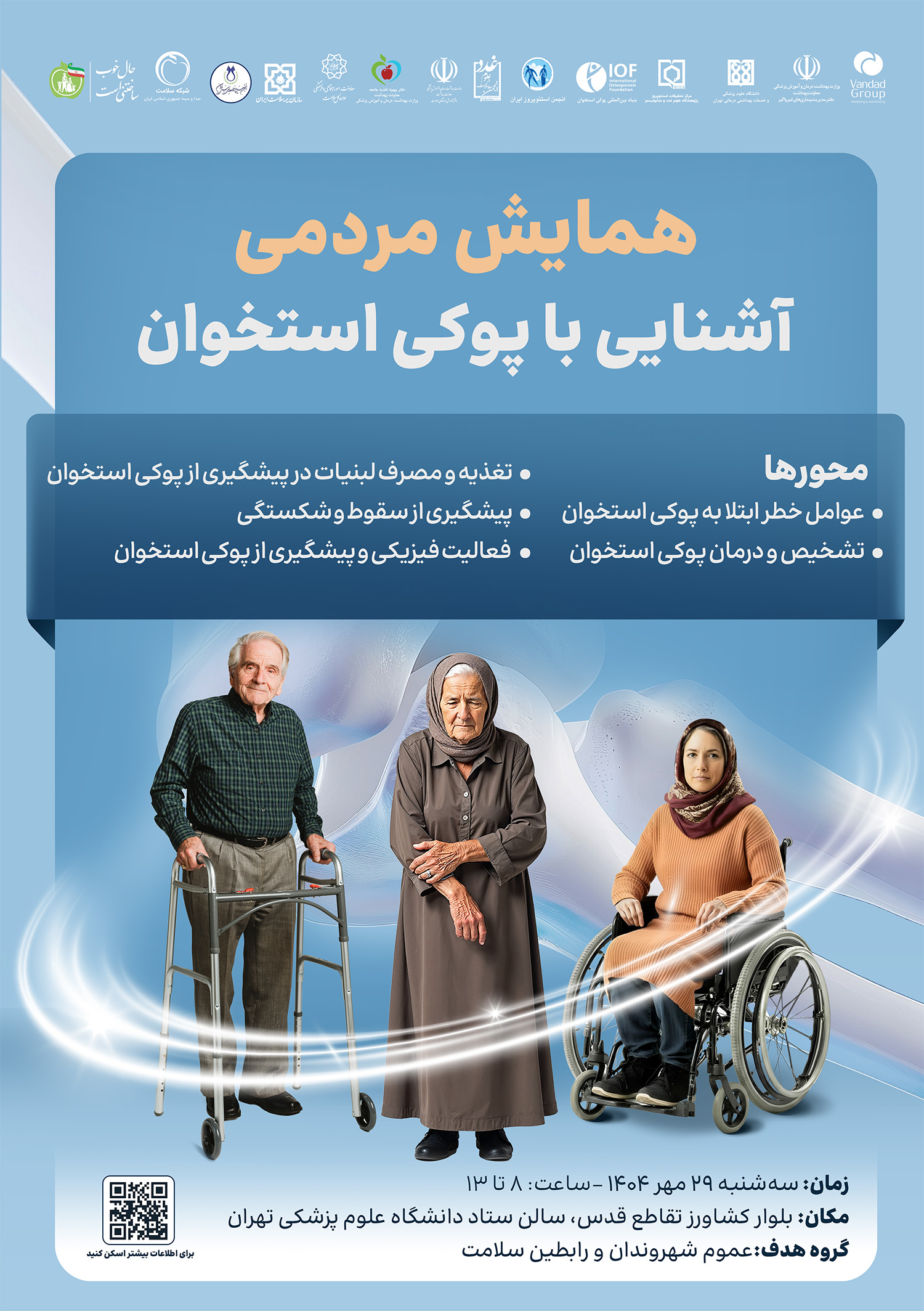این همایش در تاریخ سه شنبه 29 مهرماه 1404 همزمان با روز جهانی پوکی استخوان در محل بلوار کشاورز تقاطع قدس، سالن ستاد دانشگاه علوم پزشکی تهران برگزار می شود.
